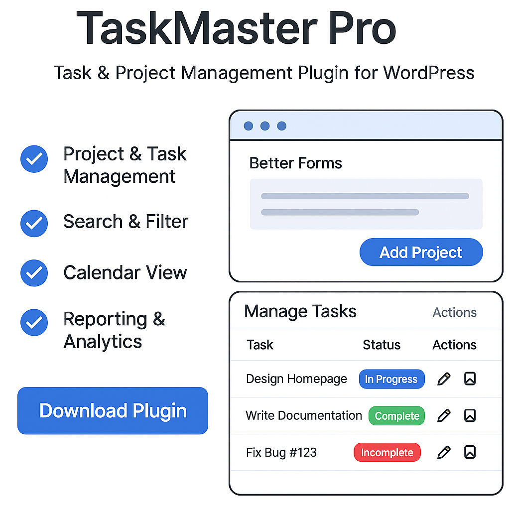 🎯 افزونه مدیریت وظایف و پروژهها در وردپرس – TaskMaster Pro